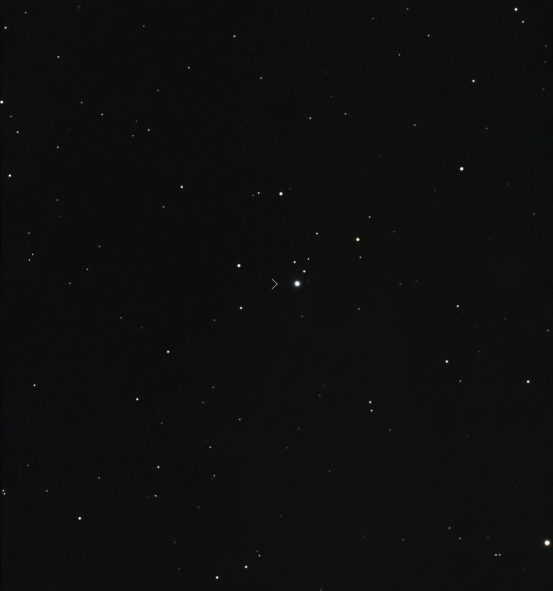 Neptune est facile à mettre en évidence avec le Seestar S50, la planète géante apparaît comme le point le plus lumineux du champ stellaire des Poissons où elle se trouve avec sa magnitude de 7,8. Ce soir elle se trouve à 4,34 milliards de km, soit 29 UA.