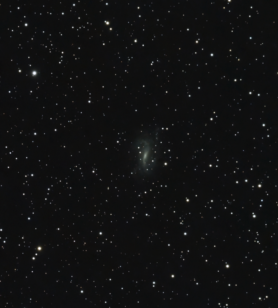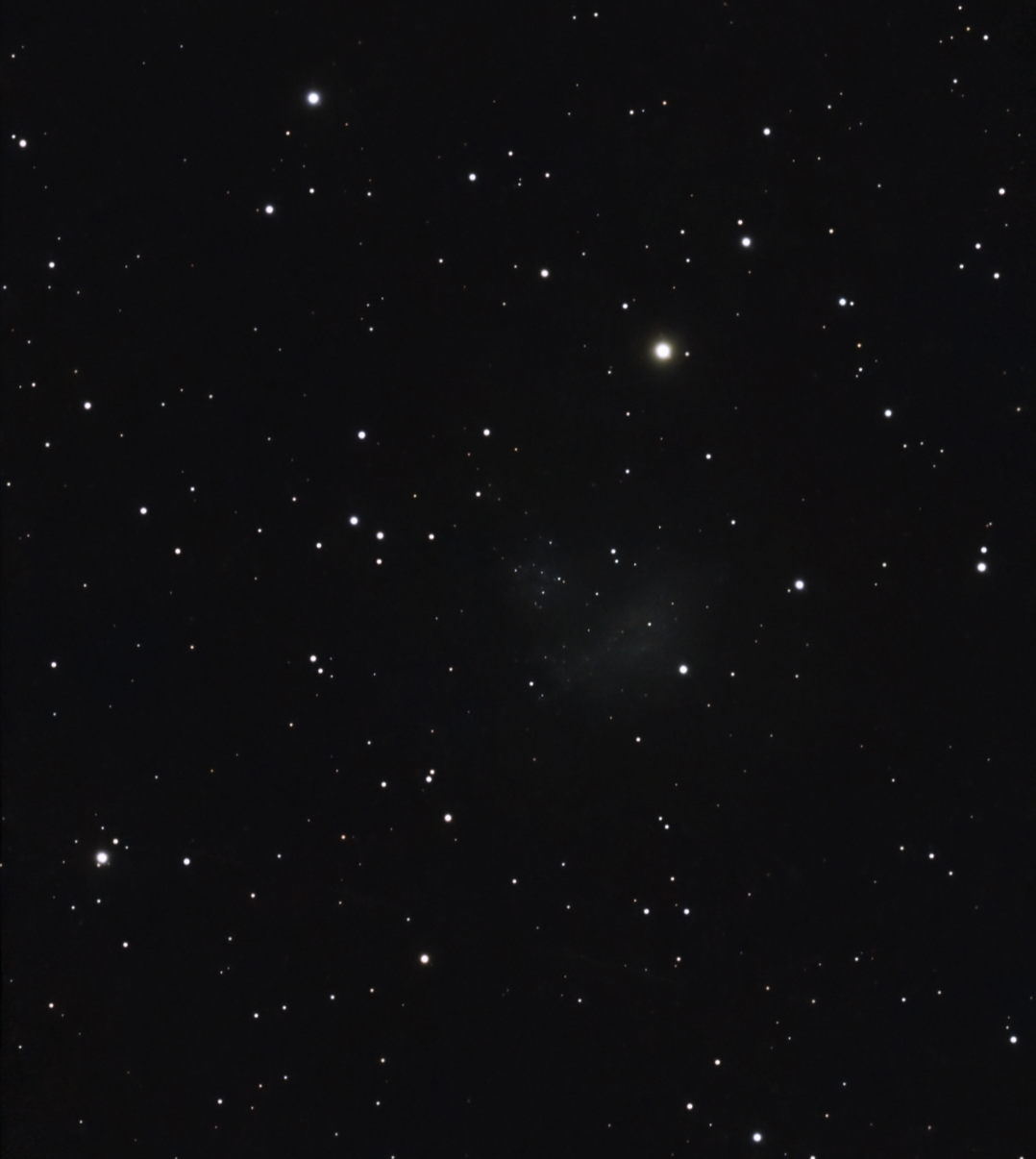 Là aussi j'ai doublé l'observation visuelle d'une image réalisée avec le Seestar S50. NGC 784 est une spirale barrée naine de type SBdm. Sa largeur apparente dans le ciel vient essentiellement de sa relative proximité car elle ne se situe qu'à 13,6 millions d'année-lumière. Son disque galactique est largement plus petit que celui de notre Voie Lactée, il ne mesure que 27 300 années-lumière de diamètre. NGC 784 fait partie d'un petit groupement galactique qui englobe également NGC 672 et IC1727.