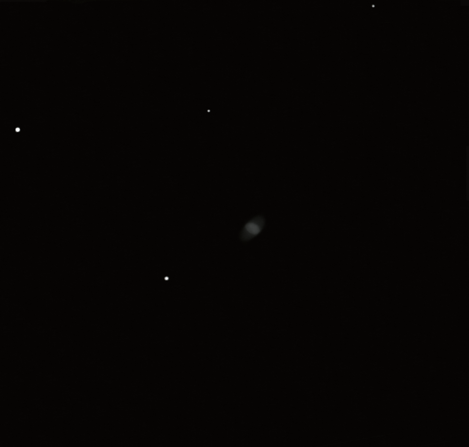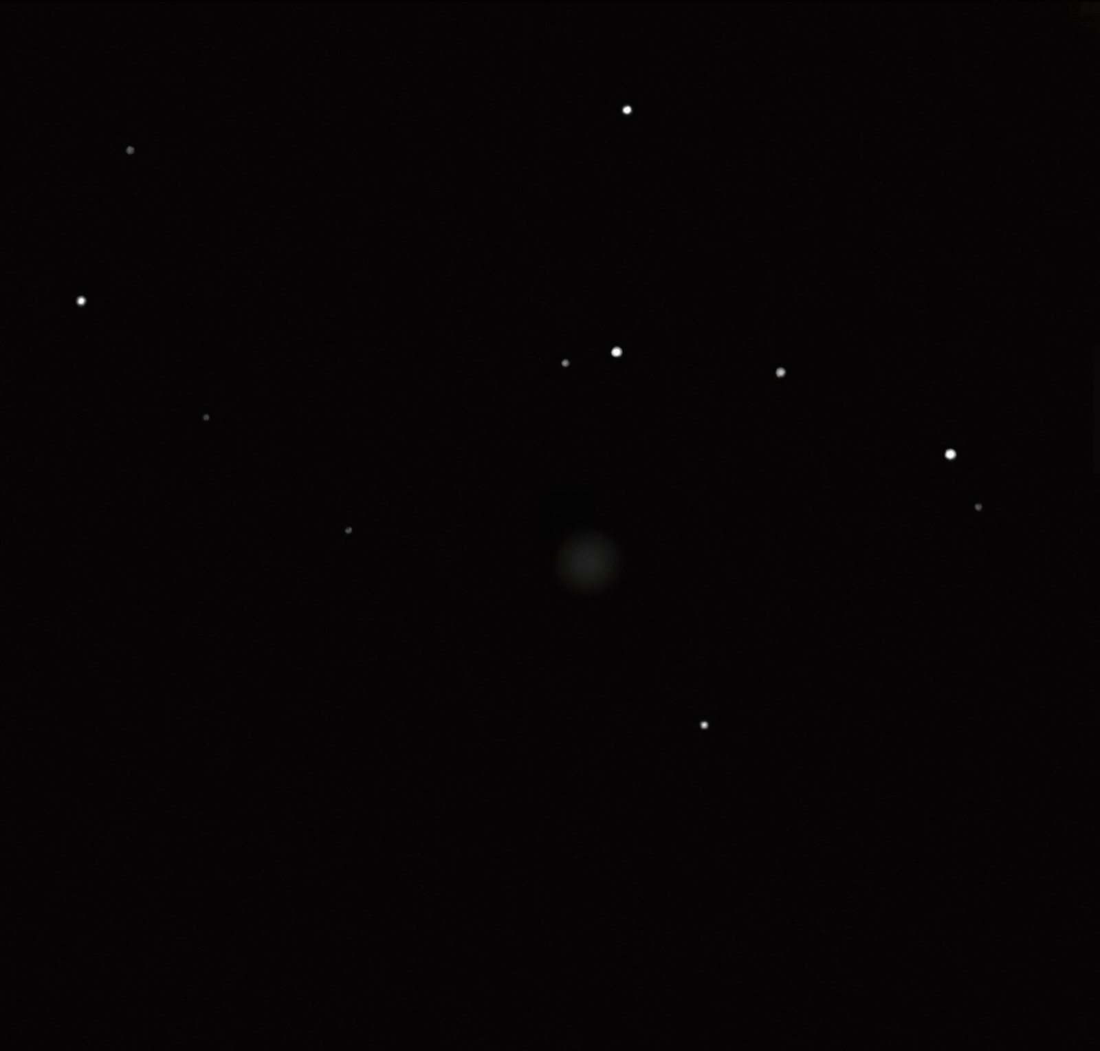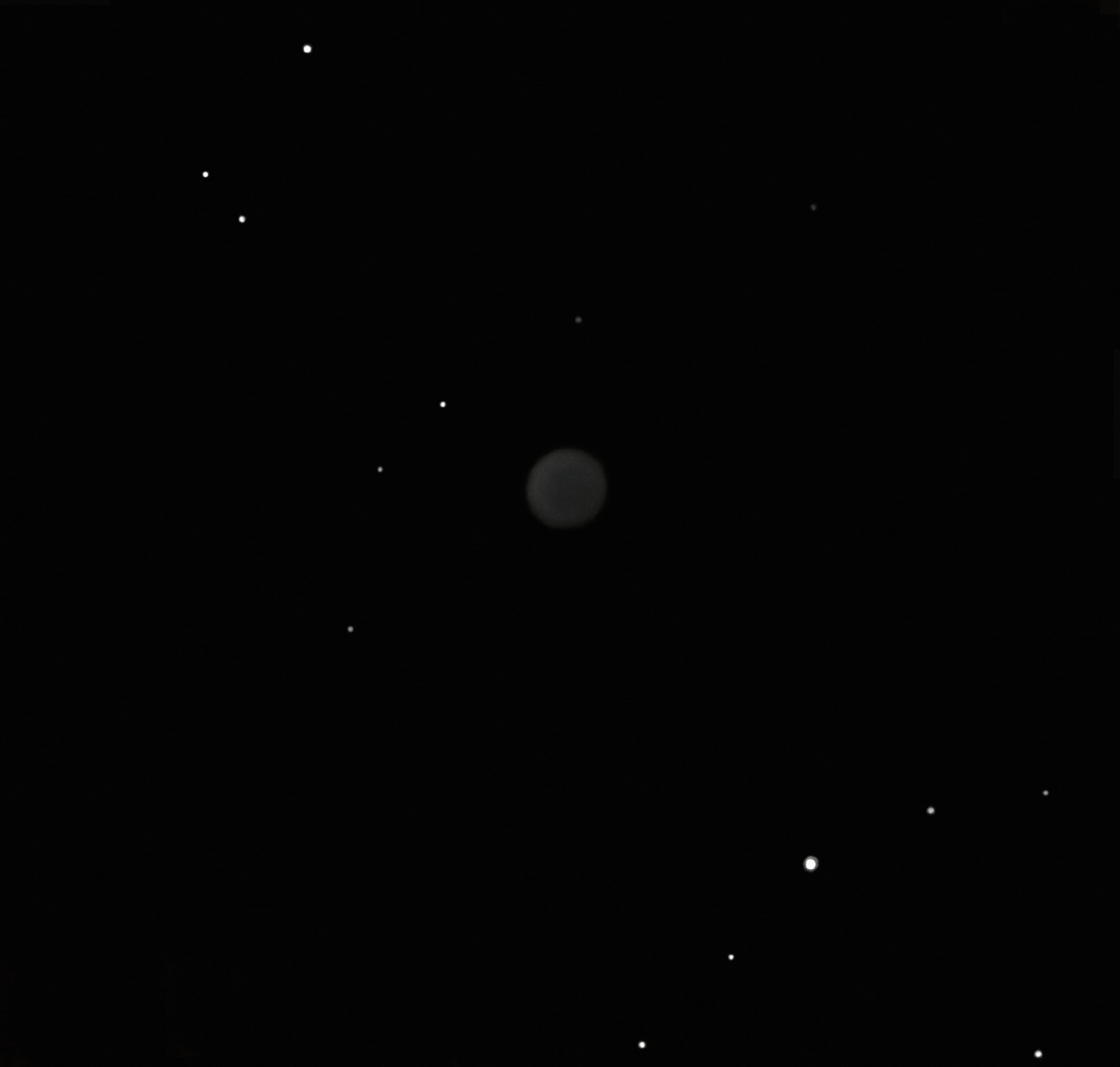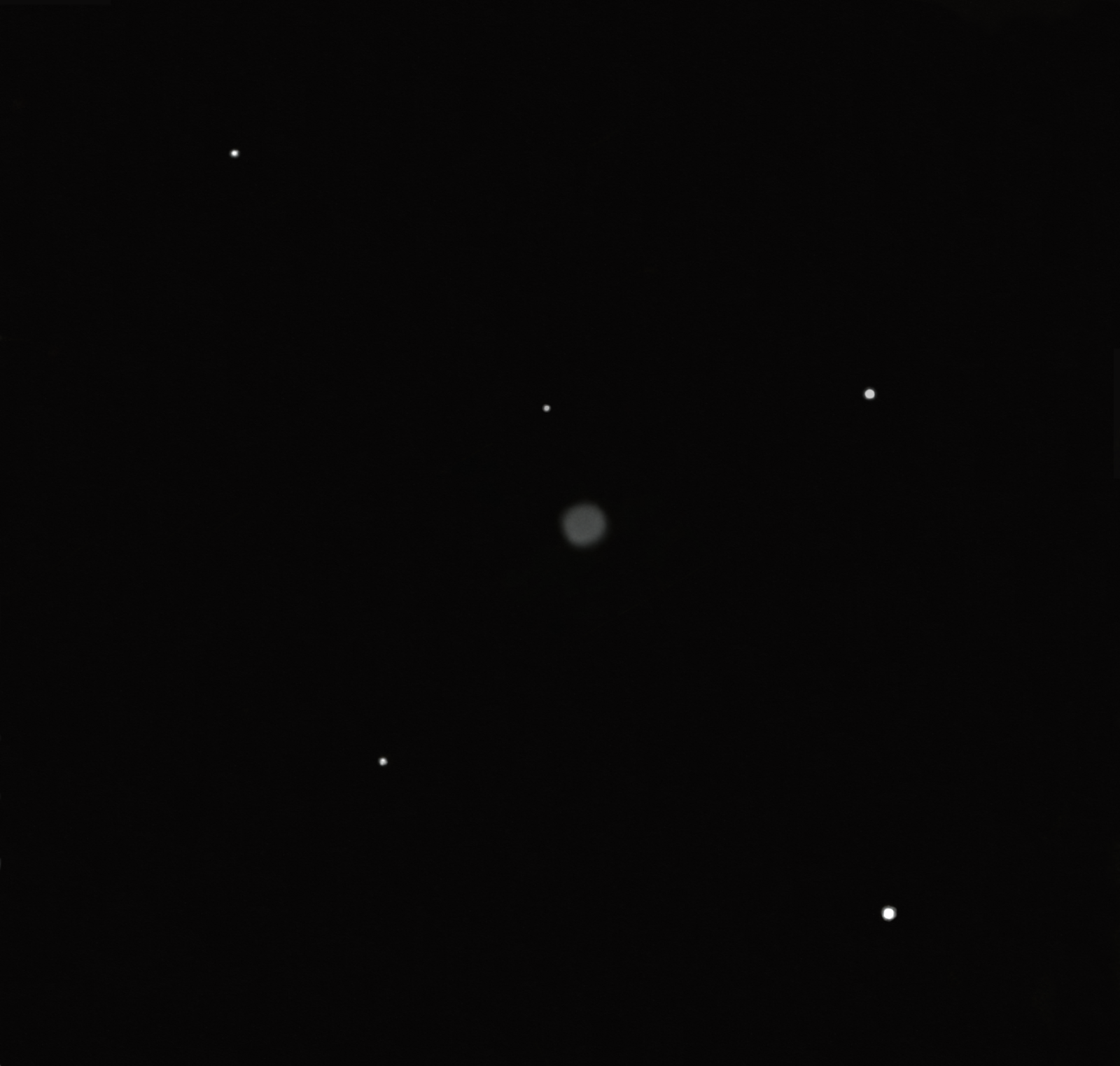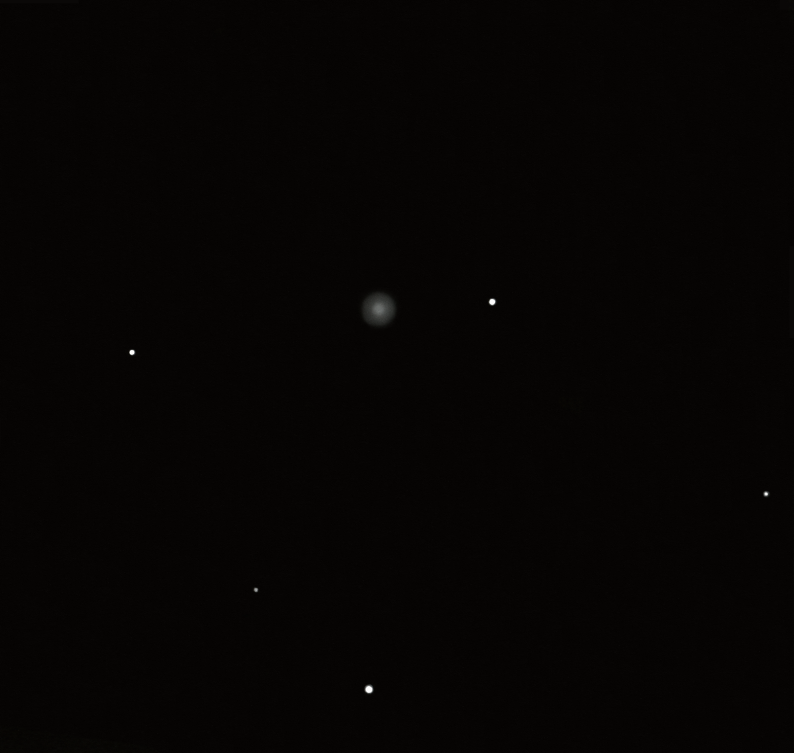 Avec la caméra noir et blanc 462M, mais sans filtre et en binning 2x2. Je surexpose le disque planétaire d'Uranus mais je parviens à faire ressortir ses satellites naturel. Ce soir nous pouvons en compter cinq !