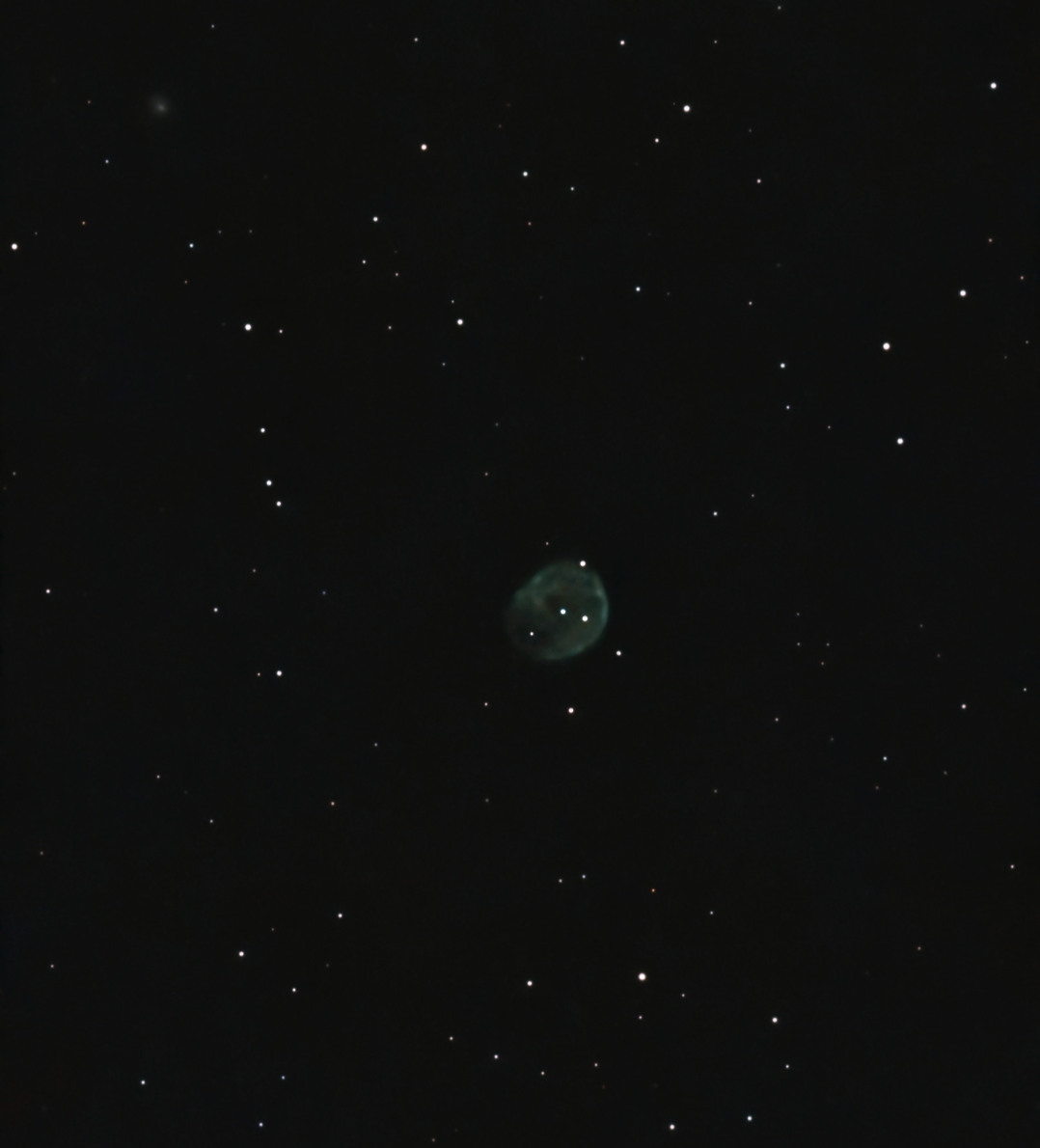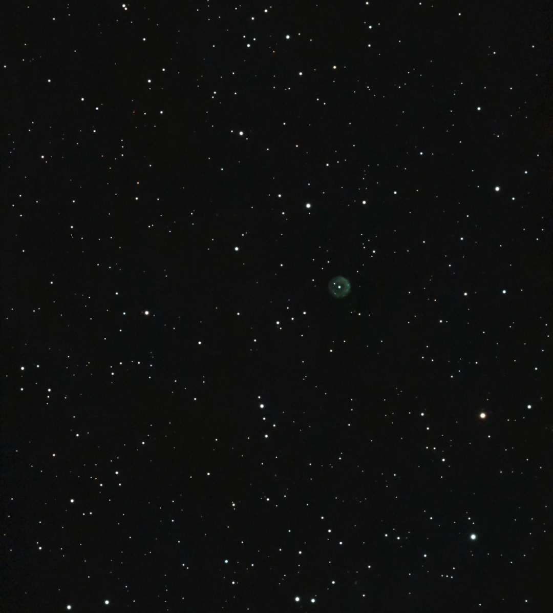 Quant au Seestar, il part dans la constellation de Pégase, histoire d'immortaliser la discrète nébuleuse planétaire NGC 7094 (13,4m - 99"x96"). Sa distance est mal connue, elle est estimée à 5200 années-lumière, ce qui donne un diamètre réel du rémanent de 1,2 années-lumière. Notons que l'étoile centrale de 13,68m est bien visible au cœur de la bulle de gaz, elle est de type O(H).