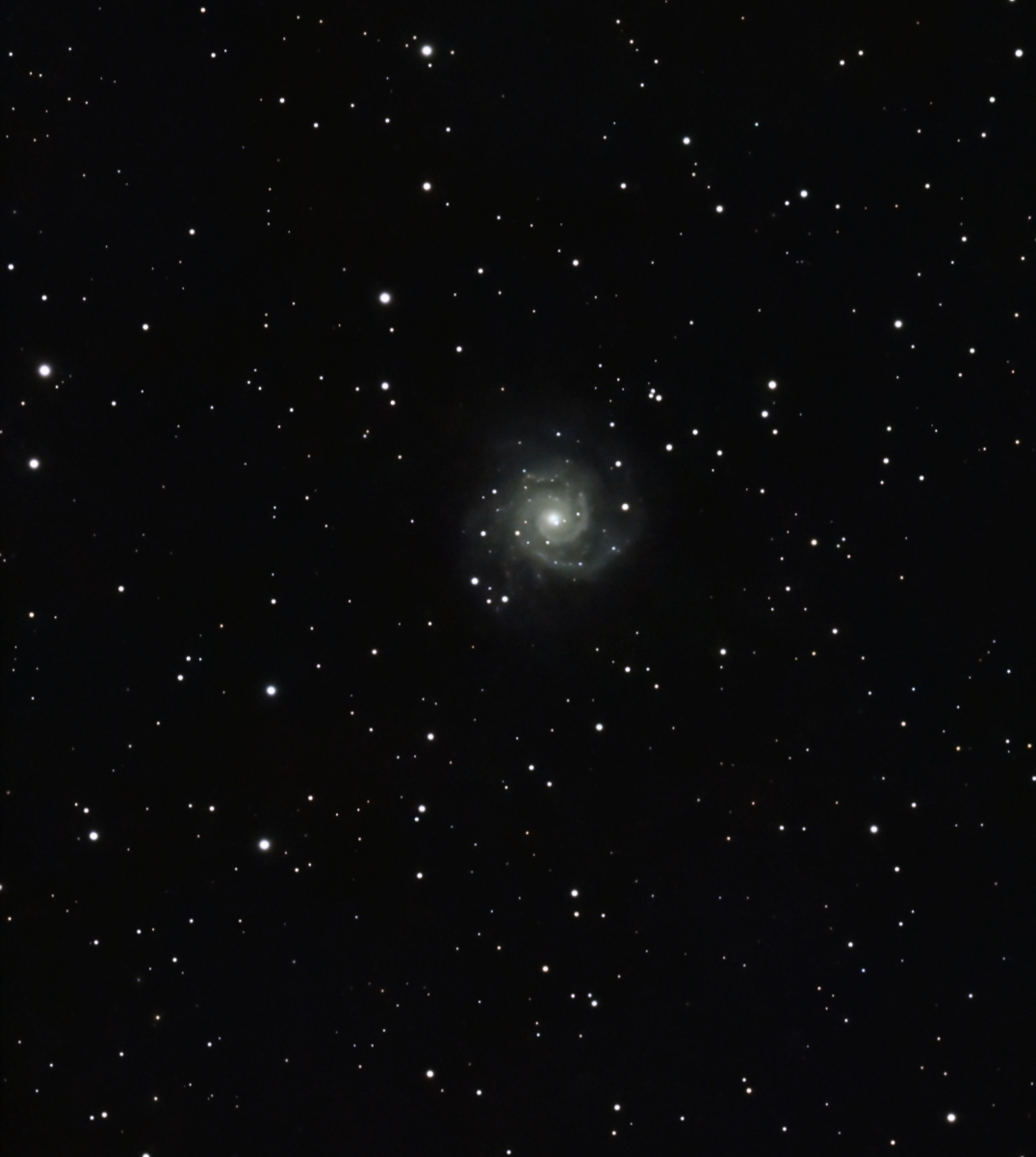 Le Seestar S50 est orienté en direction des Poissons pour imager la galaxie M74 (9,1m - 10,5'x9,5'). il s'agit d'une spirale de type SA(s)c dont la distance est estimée à 24,5 millions d'années-lumière. Son disque galactique vu de face s'étend sur 85 300 années-lumière, il abrite un trou noir supermassif en son cœur dont la masse équivaut à 5 millions de fois celle du Soleil.